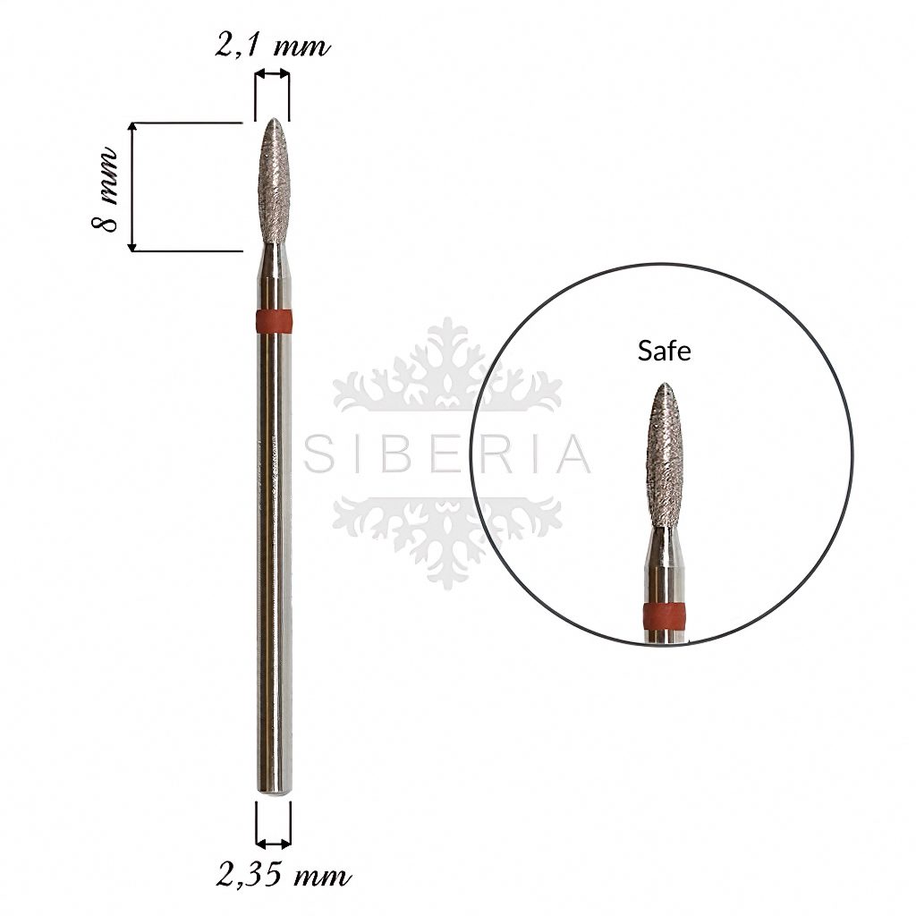 Fresa / Broca KMIZ de diamante, forma de llama fina, grano fino. 2,1mm (sin punta)