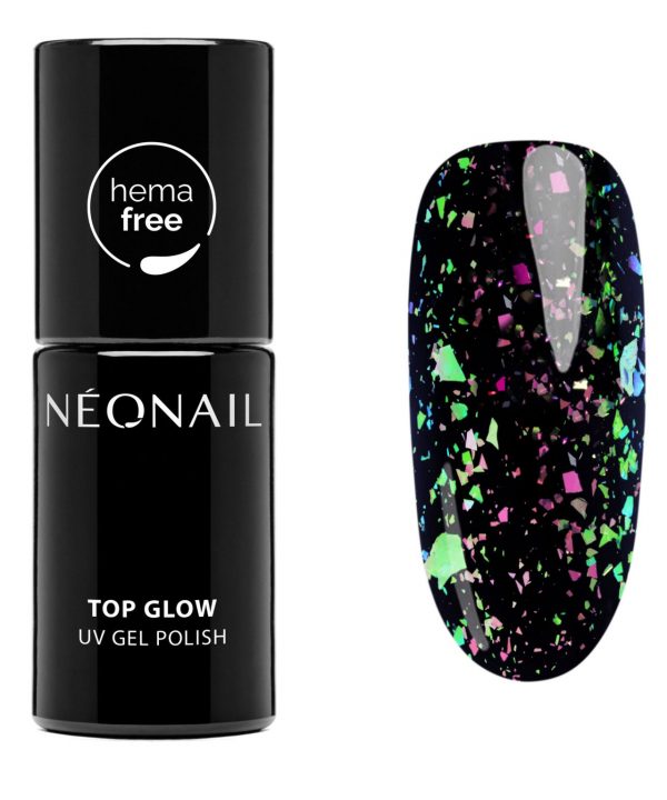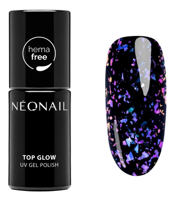 Top Glow Rose Aurora Flakes, top decorativo transparente con partículas rosas.